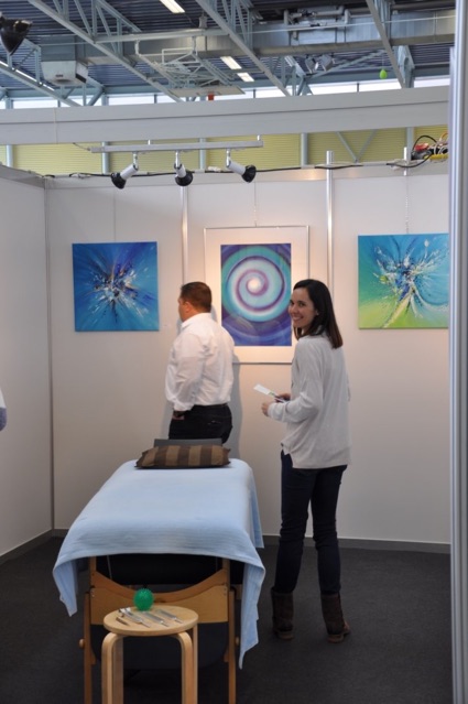 Ich durfte am Stand bei der „Gesundheitsoase und Gesundheitsinsel“ meine Bilder aufhängen. Mein grünes Bild mit dem Namen „Herausforderungen sind Chancen“ fand einen sehr schönen Platz am Stand bei der Spitex! Es hat von den Farben und den Menschen auf dem Bild wunderbar zur Spitex gepasst. Herzlichen Dank, dass ich es bei Euch aufhängen durfte!
